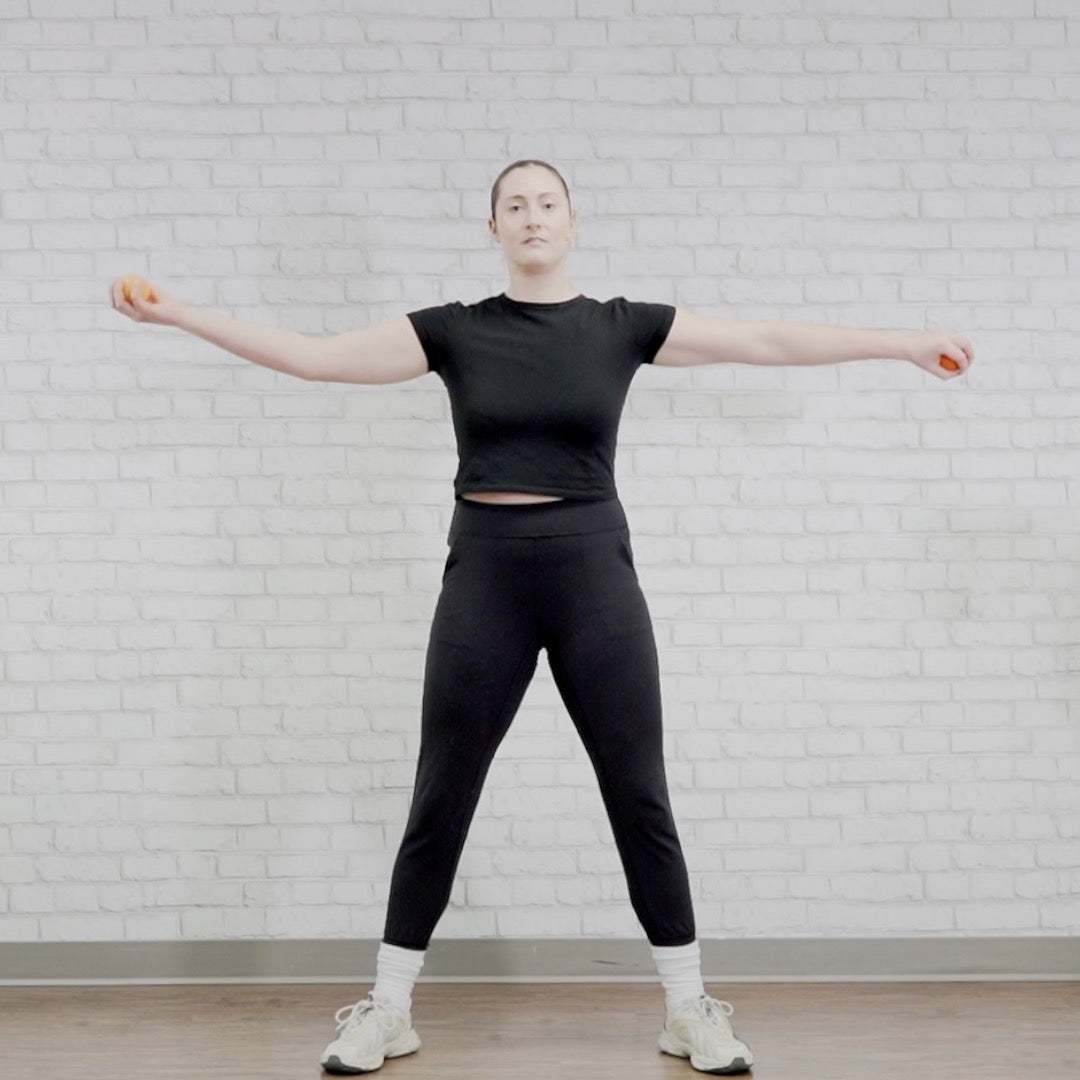 - Equipment: Chair; Lots of Space; Lacrosse or Tennis Balls or Small Dumbbells